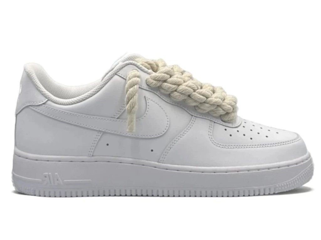 Legendární silueta Nike Air Force 1 přichází v ikonické bílé barvě, která je synonymem stylu, pohodlí a univerzálnosti. Tento nadčasový model, který si získal srdce sneakerheadů po celém světě, nyní dostává nový designový prvek – jedinečné „thick“ rope šňůrky. Tyto robustní šňůrky dodávají klasické obuvi moderní nádech a dělají z ní ještě výraznější módní doplněk.