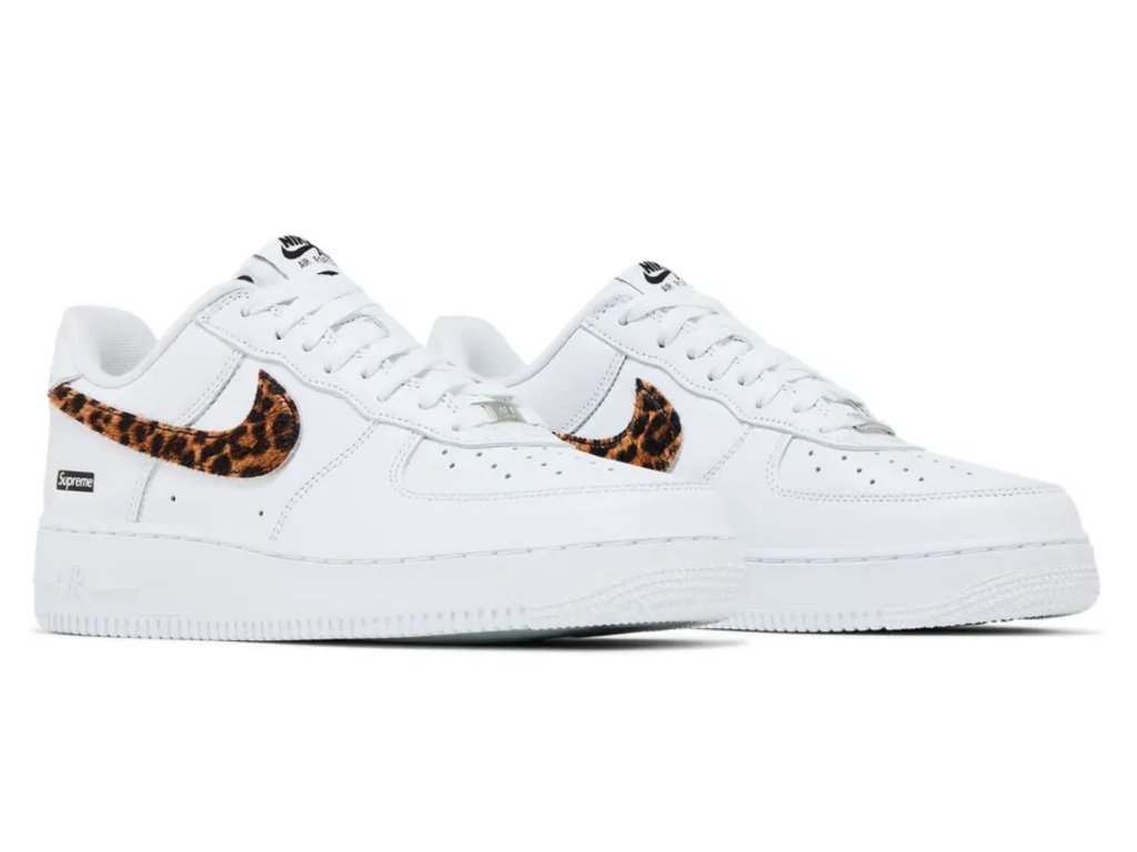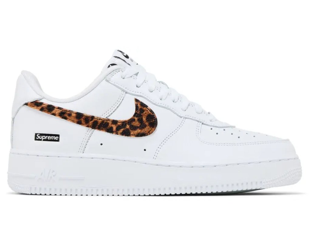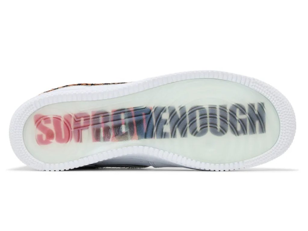 Nike Air Force 1 Low Supreme x GOODENOUGH spojují síly tří ikon streetwearu v jednom unikátním modelu. Luxusní kožený svršek je ozdoben leopardím Swooshem z ponyhair materiálu, který botám dodává odvážný akcent. Na patní části se vyjímají kontrastní loga Supreme a GOODENOUGH, zatímco průhledná gumová podrážka odhaluje speciální nápis „SUPOODENOUGH“. Tento model je jasným vyjádřením stylu a sběratelským kouskem pro všechny, kdo ocení propojení tradice, precizního zpracování a originálního designu.